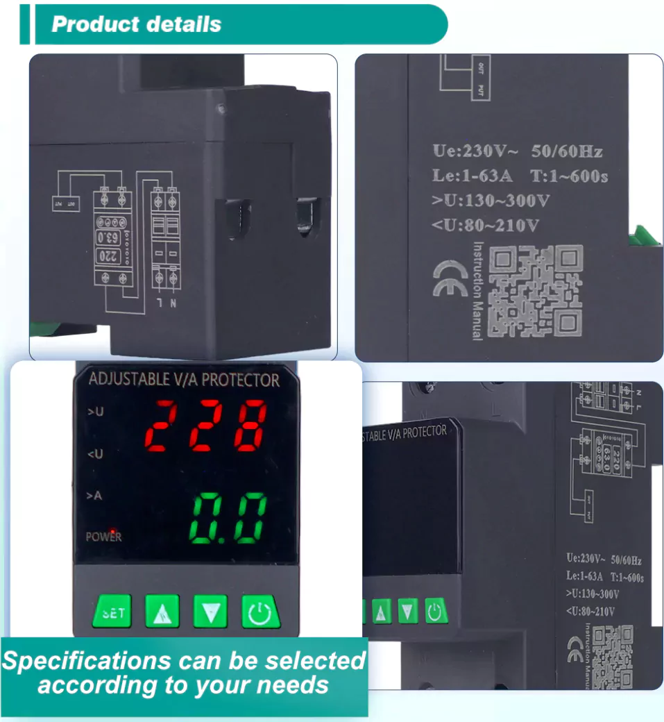 4.Siz 2 qütb gərginlik qoruyucu relay, görünüşünü və funksionallığını artıraraq asan izləmə quraşdırılması üçün modul dizayn edir.